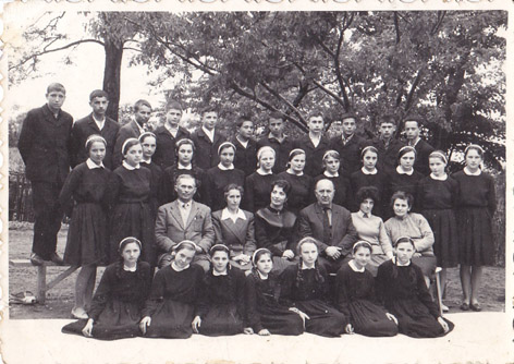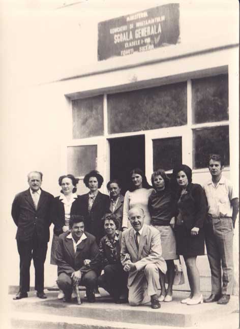 ![]() Mai 1967, Scoala generala din Tisauti, Director Daschievici Vaspasian (al patrulea din stânga). Una din clasele a VIII -a, cu elevii din Tisauti, Ratus, Ipotesti si Lisaura |