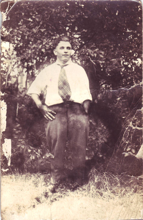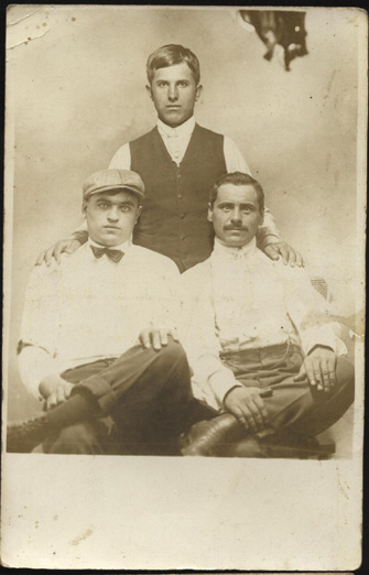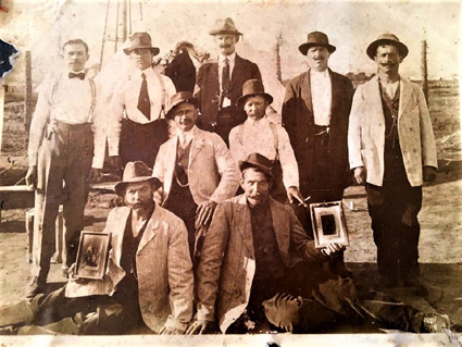 Sainiuc Stefan nascut in 1881, paca, rândul 2 dreapta, cu alti emigranti, undeva in America, anul 1925 |