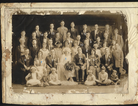 Nunta lui Vasile Bucaciuc & Maria în Canada între 1922 - 1924, nuntasii sunt din Ipotesti, Hreatzca si Bosanci. |