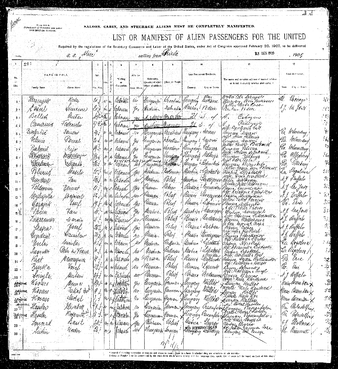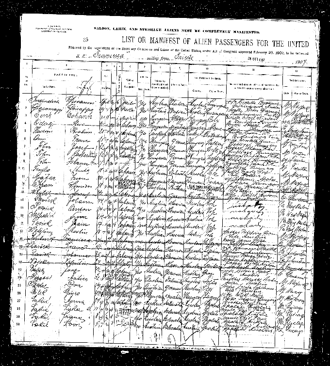 1907 - Trieste 13 oct.-New York 1 nov. Vaporul facea escala în Patras, Grecia si Palermo, Sicilia, luând la bord emigranti de toate nationalitatile