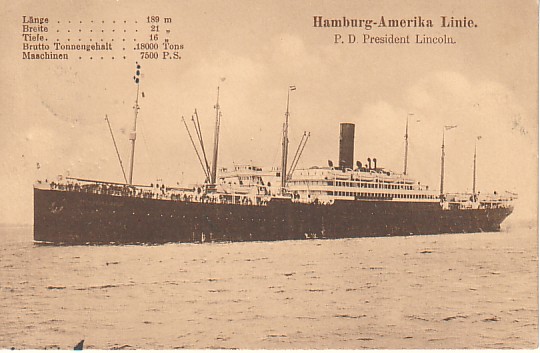 SS Amerika, Hamburg America Line. Construit în 1905 la Belfast, 2508 pasageri.