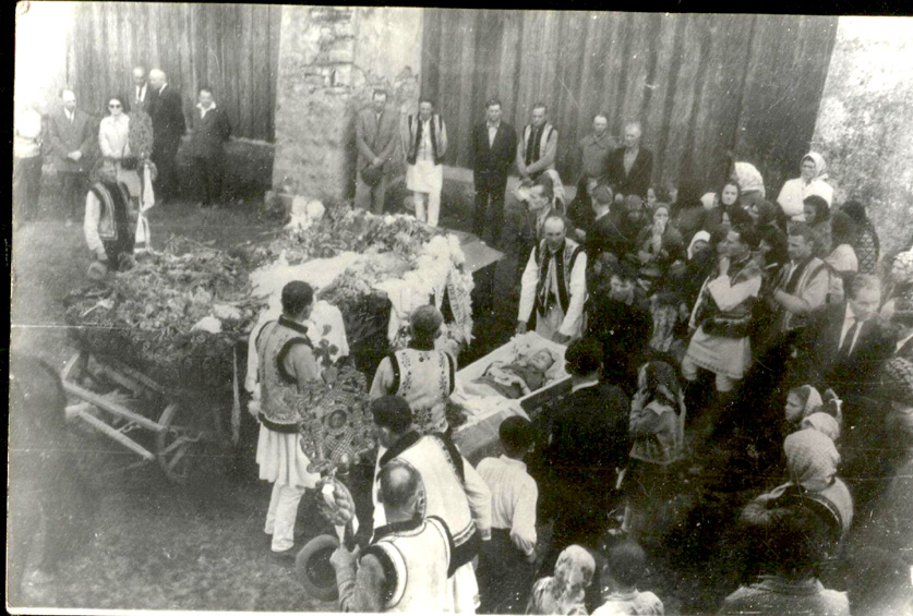 Nu se apeleaza înca la serviciile pompelor funebre. Familia, vecinii, prietenii defunctului pregatesc toate necesare ceremoniei. Întîi se acopera cu o pânza toate oglinzile si tot ce ar putea reflecta imaginea. Se face toaleta mortului. El e îmbracat cu hainele cele mai frumoase si e aseazat într-un sicriu, tinut pâna în ziua înmormântarii pe o masa în "casa mare". Familia îmbraca haine de doliu, negre, femeile despletesc parul, barbatzii nu se rad. Înmormântarea se face a treia zi dupa moarte. În primele doua seri vine preotul si lumea la priveghi. O lumânare arde continuu la capul defunctului ca sa-i lumineze calea pe drumul cel de veci. În ziua a doua se încarca pomul cu ofrande, se pregatesc sarmalele, coliva si colacii care vor fi date de pomana de sufletul mortului. Carutza care va transporta sicriul e ornamentata cu covoare si flori. Înmormântarea se face începând cu orele 13. Cortegiul e format din coroane mortuare, pomul cu ofrande, coliva, protzese, corul bisericesc si in unele cazuri si o fanfara care acompaniaza cortegiul cu "doina", preotzii, carutza cu sicriul si alaiul de oameni. Cortegiul face opriri în fata caselor familiei defunctului. Dupa înmormântare se ofera în cimitir o masa (sarmale, coliva si bautura) la toti participantzii.