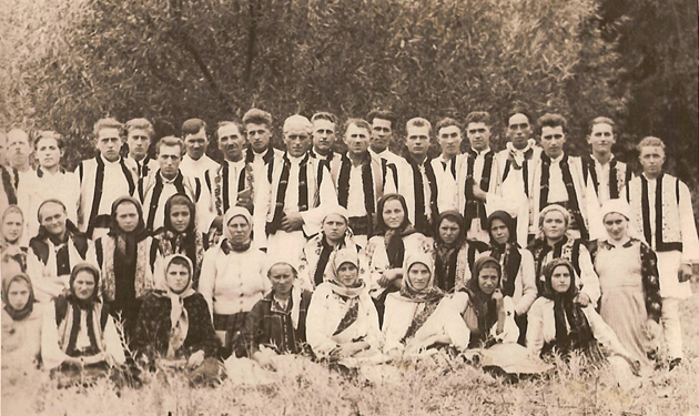 ![]() Corul bisericii în 1949 dirijata de Ilie Irimiciuc |