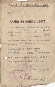 ![]() Prizonier in Italia, Ioan Iatcu este eliberat în 1919 |