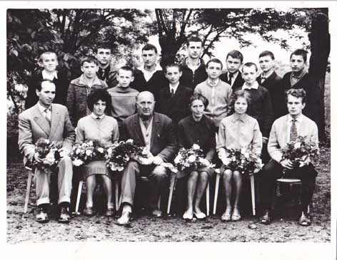 ![]() Mai 1967, Scoala generala din Tisauti, Director Daschievici Vaspasian (al patrulea din stânga). Una din clasele a VIII -a, cu elevii din Tisauti, Ratus, Ipotesti si Lisaura |