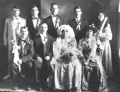 Nunta lui Vasile Bucaciuc & Maria în Canada între 1922 - 1924, nuntasii sunt din Ipotesti, Hreatzca si Bosanci. |